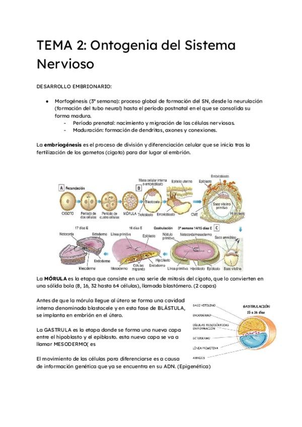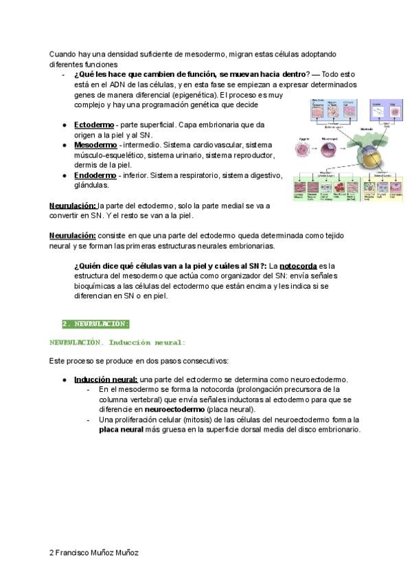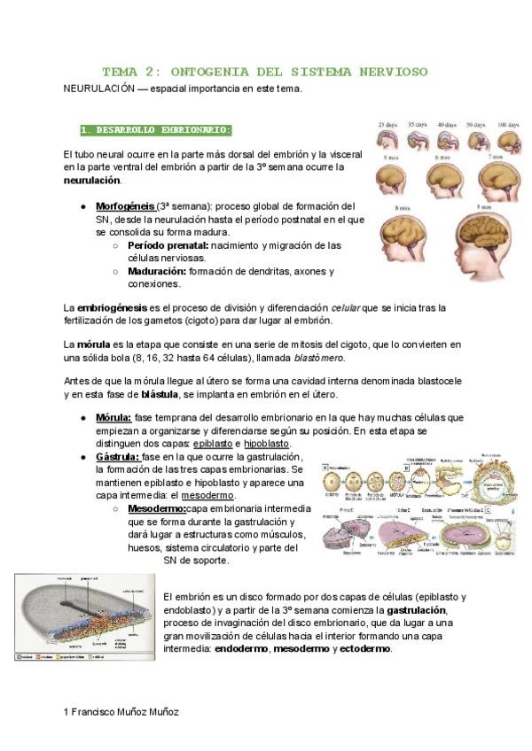 Apuntes Tema 2, Ontogenia del Sistema Nervioso. Febrero 2026. Francisco Muñoz Muñoz