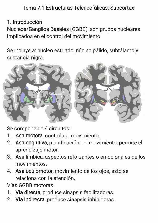 Tema 7.1 Estructuras telencefalicas: subcortex