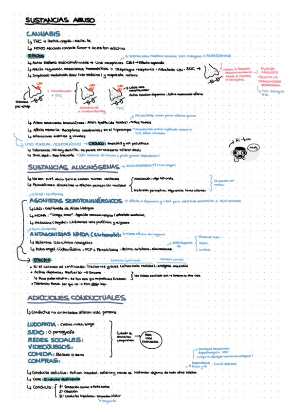 Son apuntes de clase con dibujos y como lo explica ella del tema de adicciones