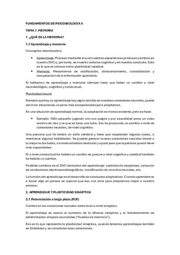 He publicado nuevos apuntes de 2º Fundamentos de Psicobiología: TEMA-7-MEMORIA.pdf