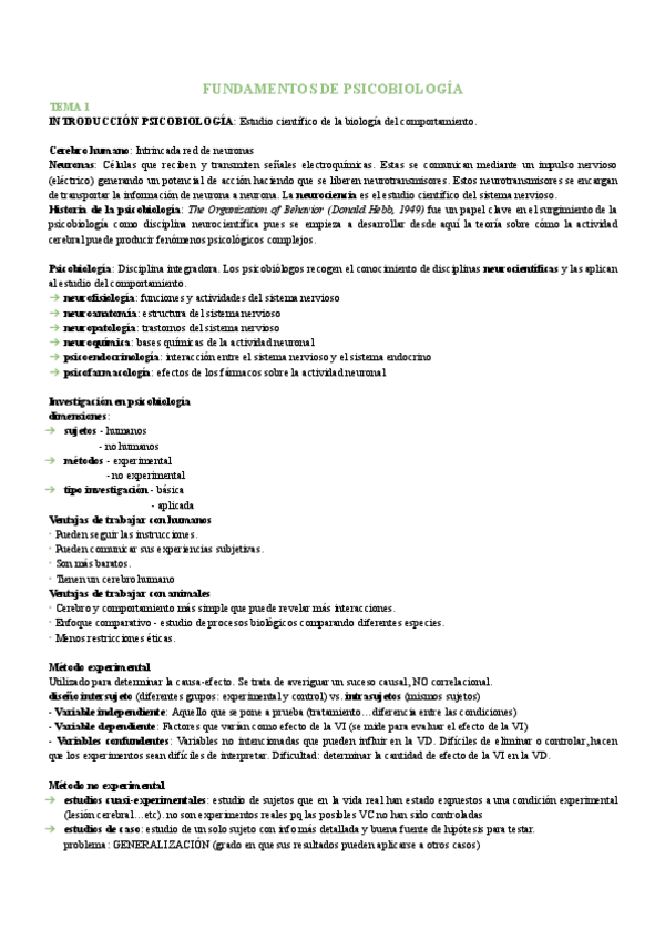 Apuntes fundamentos de la Psicobiologia