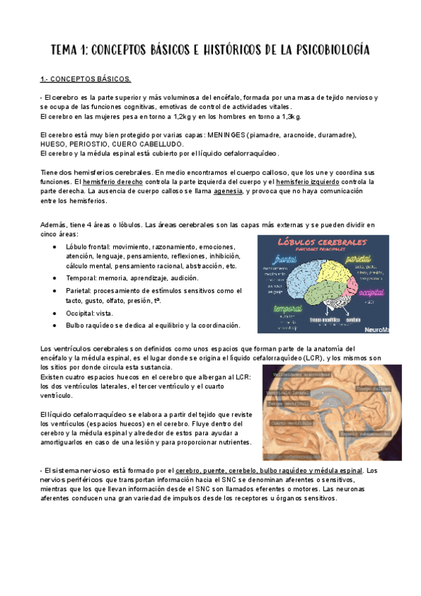 TEMA 1 CONCEPTOS BÁSICOS E HISTORICOS DE LA PSICOBIOLOGÍA