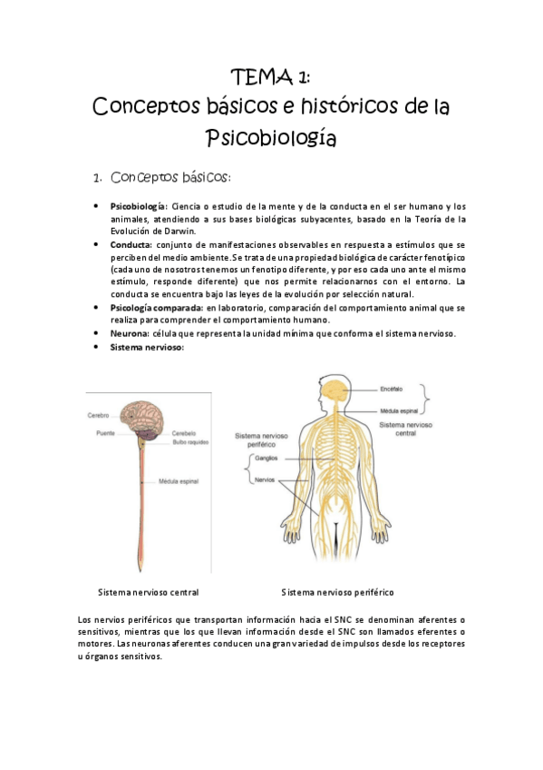 TEMA 1 CONCEPTOS BÁSICOS E HISTORICOS DE LA PSICOBIOLOGÍA