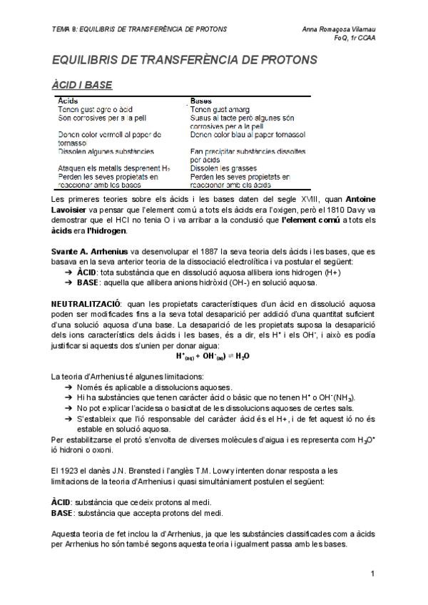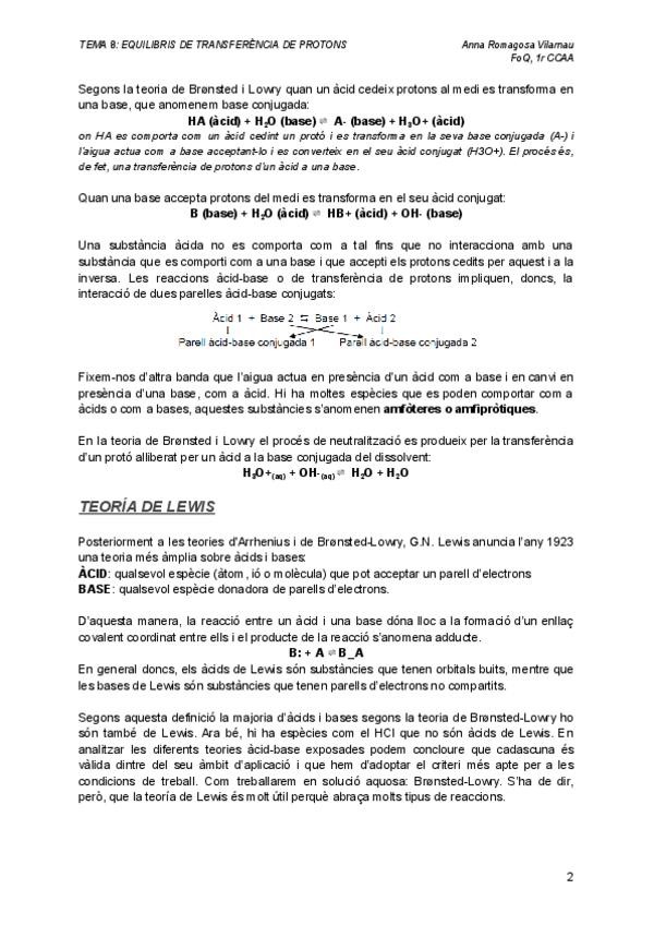 Esquemes/Resums Fonaments de química del T8 Equilibri de transferència de protons