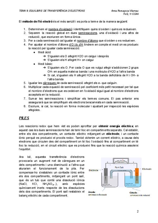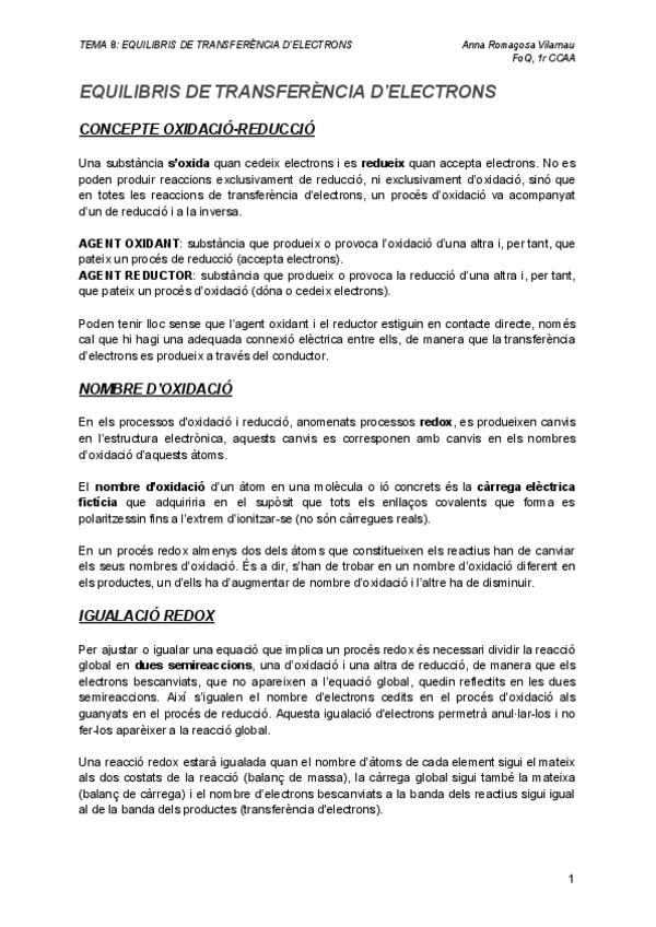 Esquemes/Resums Fonaments de química del T8 Equilibri de transferència d'electrons
