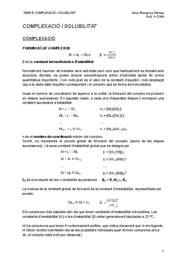 Esquemes/Resums Fonaments de química del T8 Complexació i solubilitat