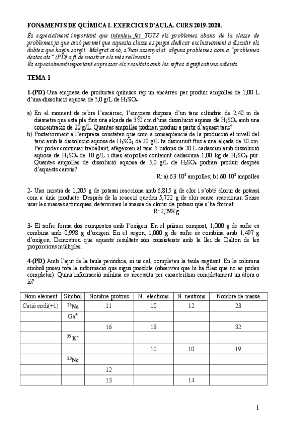 He publicado nuevos ejercicios de 1º Fundamentos de Química I: Problemes-2019-2020.pdf