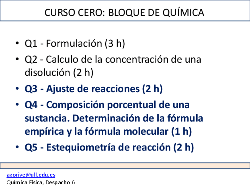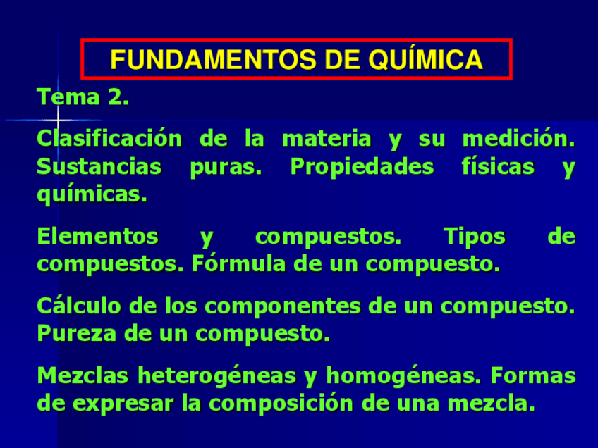 Información que contiene: estados de la materia, clasifiación, propiedades, transformaciones, cálcular la concentración