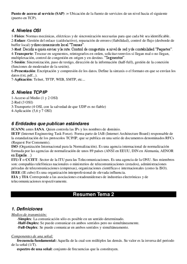 Resumen del Tema 1 de redes, las definiciones están al final del documento.