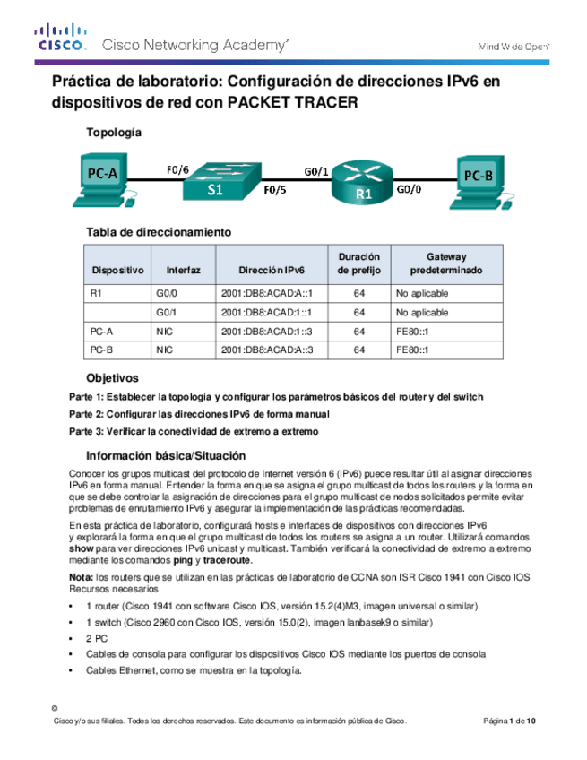 He publicado nuevos apuntes de 1º Fundamentos de Redes de Comunicaciones: 8.2.5.5-Lab-Configuring-IPv6-Addresses-on-Network-Devices-v8.docx