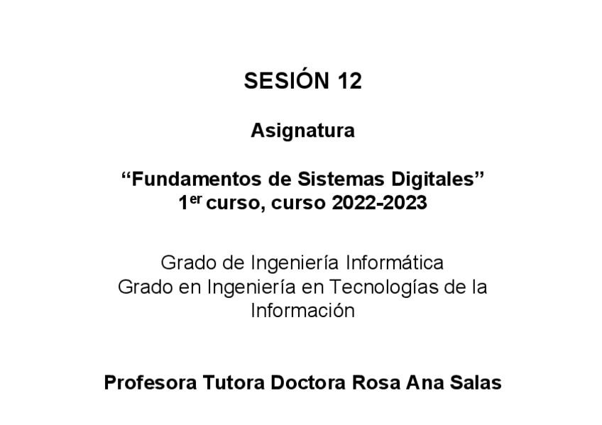 He publicado nuevos apuntes de 1º Fundamentos de Sistemas Digitales: Sesion12.pdf