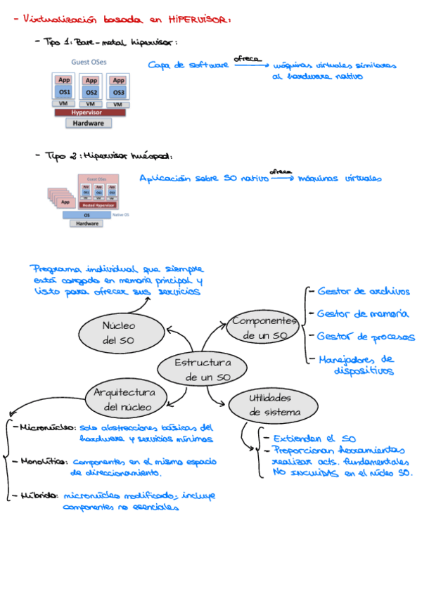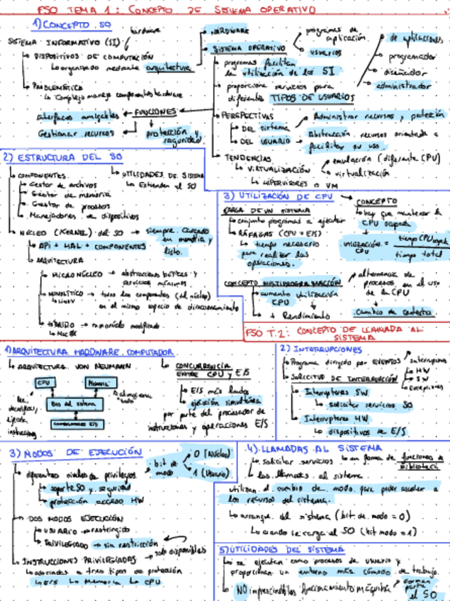 Resumen "de una página" de los Temas 1 y 2 de Fundamentos de Sistemas Operativos