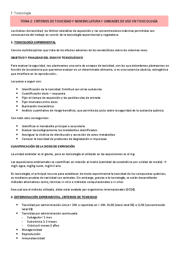 Apuntes toxicología - NO T4, T30, T33, T34