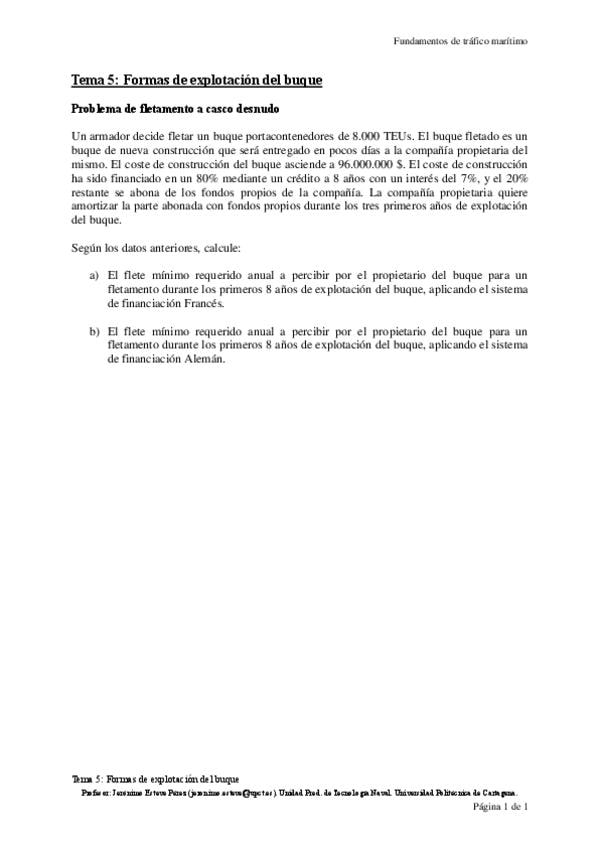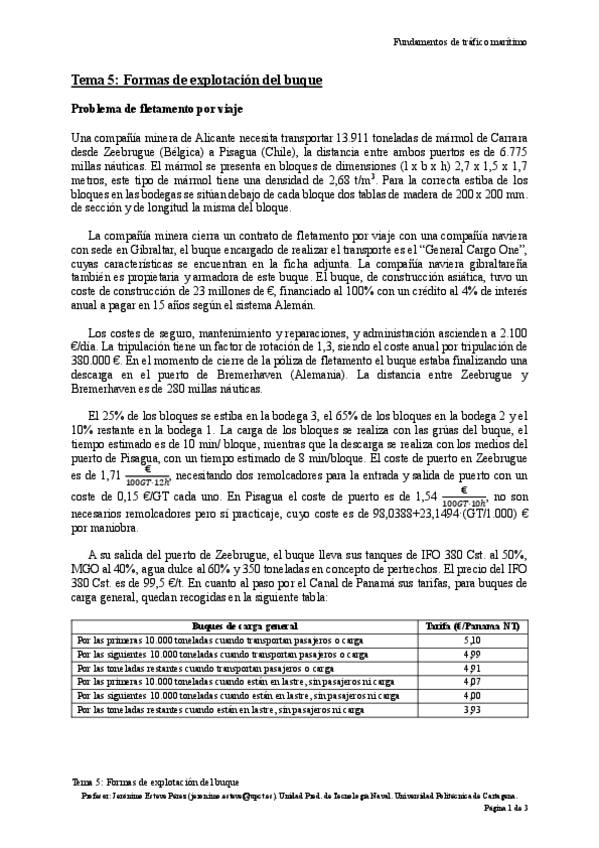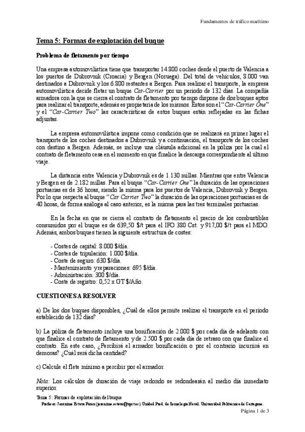 He publicado nuevos apuntes de 3º FUNDAMENTOS DE TRÁFICO MARÍTIMO: T53EnunciadoFletamentoporViaje.pdf