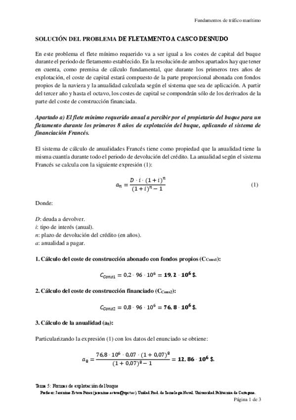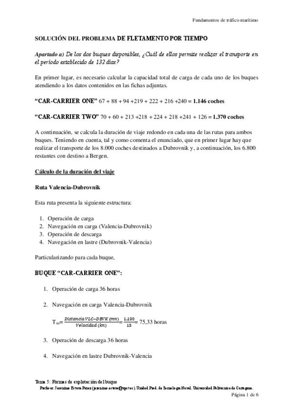 He publicado nuevos apuntes de 3º FUNDAMENTOS DE TRÁFICO MARÍTIMO: T52Solucionfletamentoportiempo.pdf