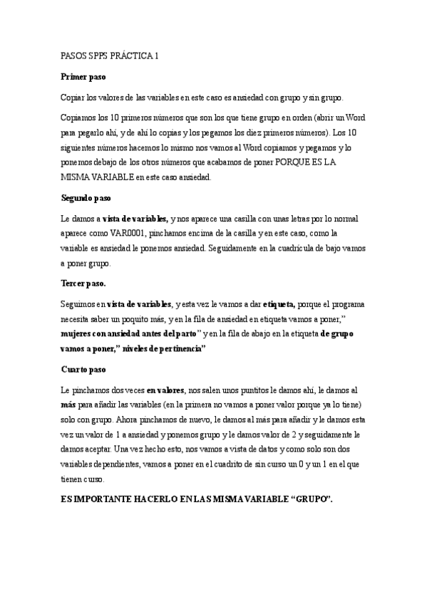 Apuntes con todas las prácticas paso por paso + fotos con todos los pasos e información extra de teoría necesaria para SPSS