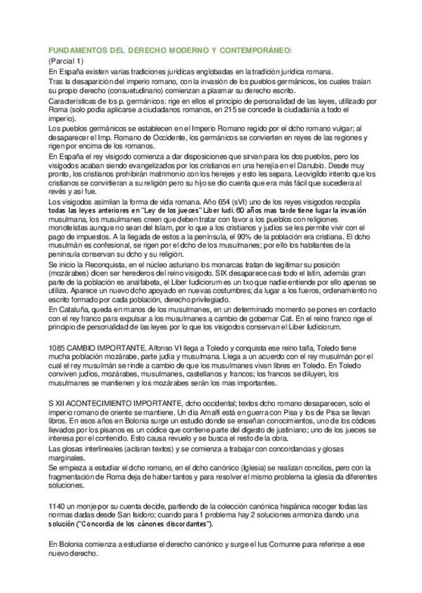 Estos apuntes los hice a partir del manual Compendio de Historia del Derecho (José Sánchez-Arcilla Bernal) - Curso 2022-2023