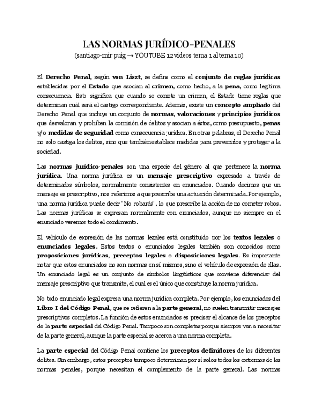 Apuntes de Fundamentos del Derecho y Teoria del delito (solo parte general y en castellano)
