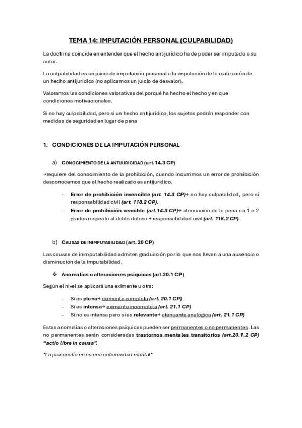 He publicado nuevos apuntes de 1º Fundamentos del Derecho Penal y Teoría del Delito: TEMA-14-IMPUTACION-PERSONAL-CULPABILIDAD.pdf