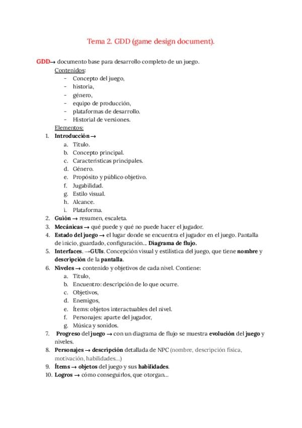 He publicado nuevos apuntes de 1º Fundamentos del Diseño y la Jugabilidad: Apuntes tema 5: Documento de diseño de videojuego (GDD).pdf