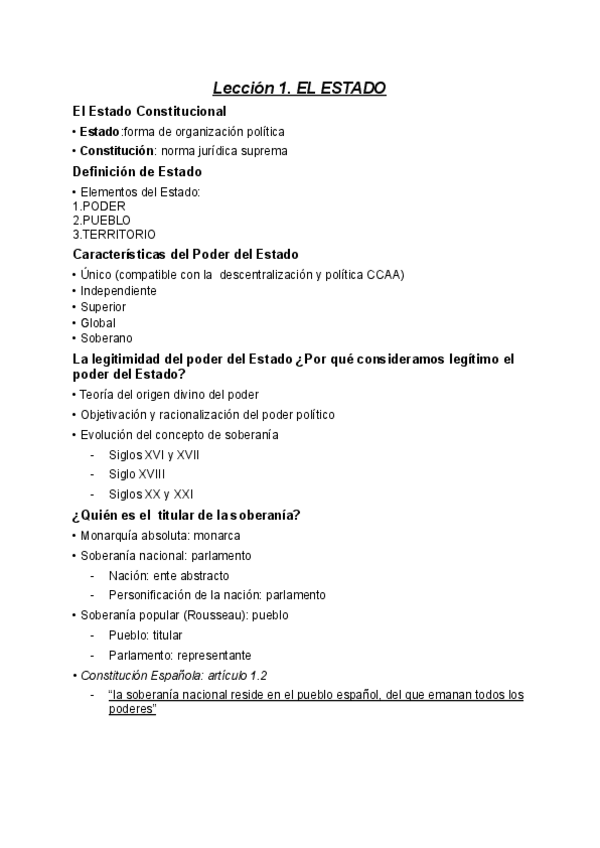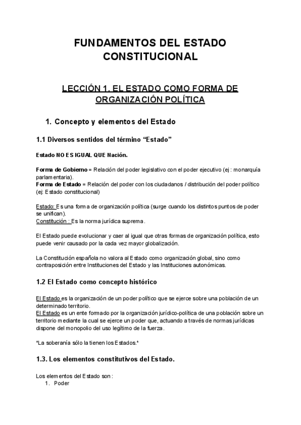 Explicación de la lección 1 de la asignatura Fundamentos del Estado Contstitucional (Estado, Pueblo, Soberanía..).