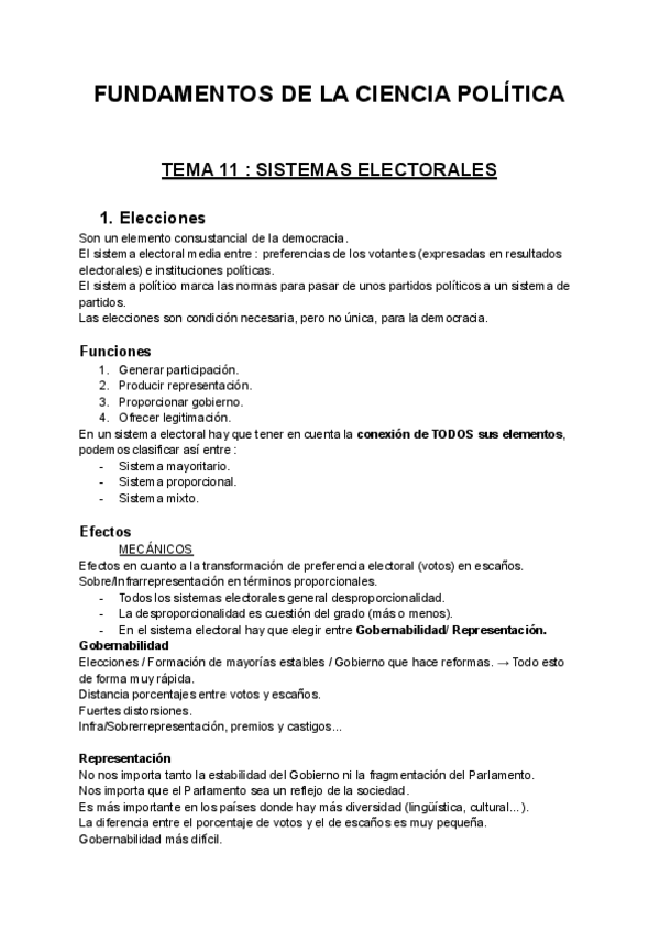 Explicación mury resumida de uno de los temas más importantes, los sistemas electorales y cada uno de sus componentes.