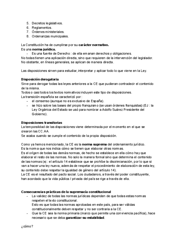 Explicación muy resumida y con apuntes detallados del texto de la CE, principios constitucionales, normas programáticas.