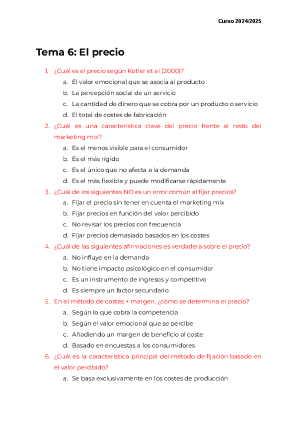 Posibles preguntas de examen tipo test marketing por temario