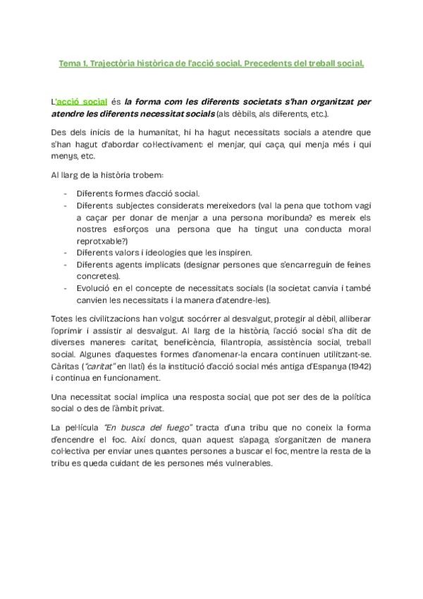 Temes 1, 2 i 3: Trajectòria històrica de l'acció social Tema 4. La fonamentació axiològica del Treball Social