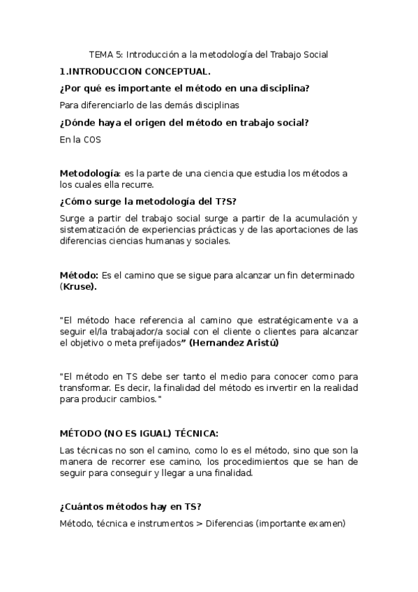 He publicado nuevos apuntes de 1º Fundamentos del Trabajo Social: Tema 5 - Introducción a la metodología del trabajo social.pdf