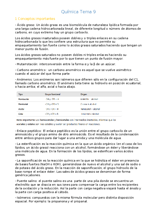 Contiene un resumen de las fórmulas y aspectos más importantes de cada tema. También un resumen de formulación orgánica