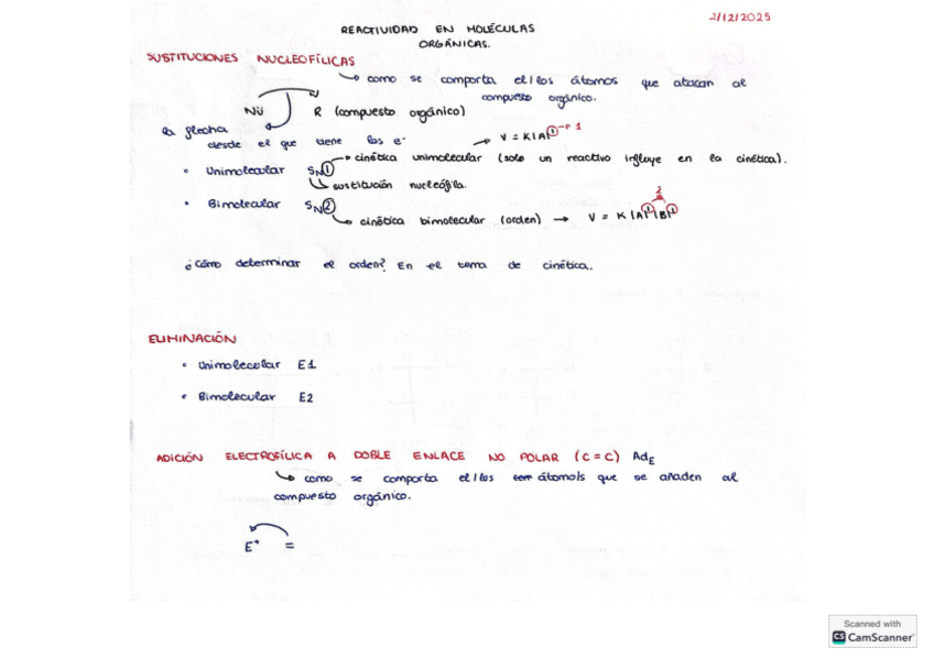 Apuntes tomados durante la presentación de la reactividad en las moléculas orgánicas.
