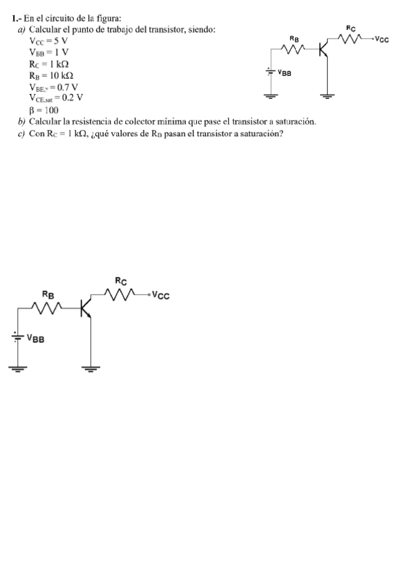 Resuelvo los ejercicios de la hoja 5 enfocados al tercer parcial y final (transistores y mosfets)