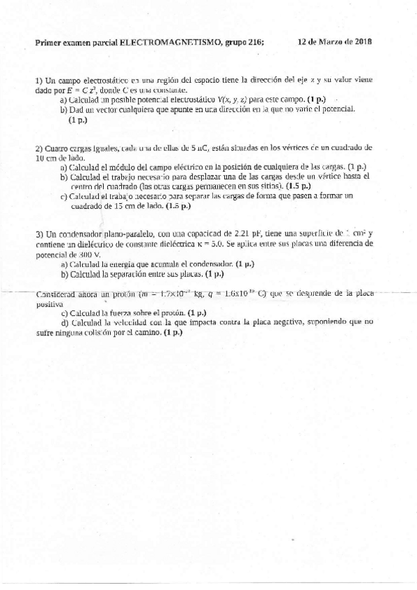 Parciales 1 Electromagnetismo (Plan antiguo)