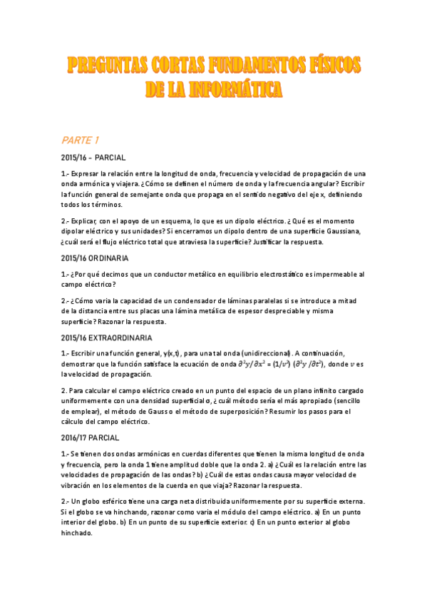 He publicado nuevos examenes de 1º Fundamentos Físicos de la Informática: PREGUNTAS CORTAS PARTE 1 Y 2 2015/16 HASTA 2023/24.pdf