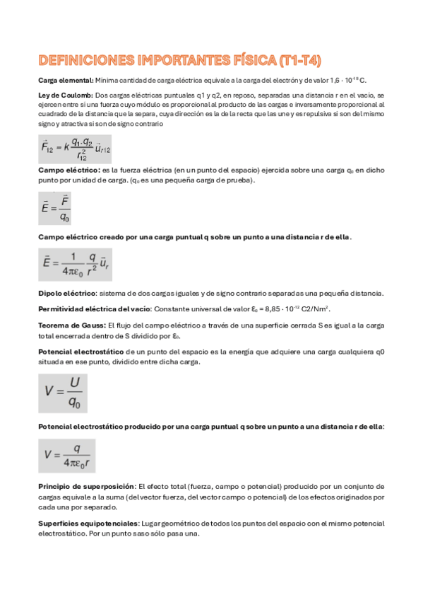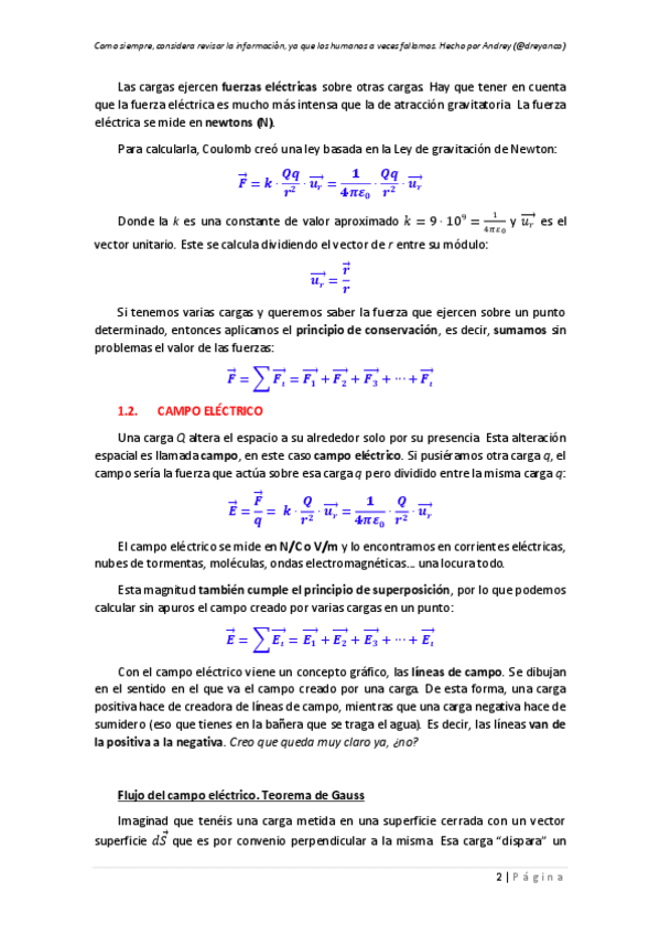 TODA la electrostática y electricidad en 34 páginas. Tenéis absolutamente TODA las fórmulas, junto con una explicación amena, fácil y lo más breve que he podido.