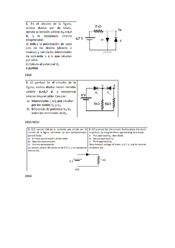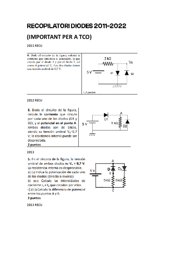 DIODOS EJERCICIOS EXAMEN Desde 2013 hasta 2023