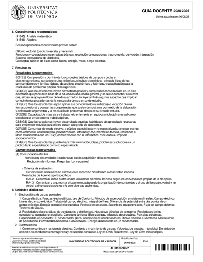 Fundamentos Físicos de la Informática Guía docente 2025-2026