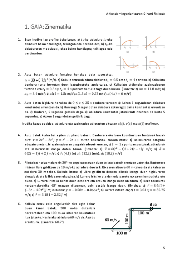 He publicado nuevos otros de 1º Fundamentos Físicos de la Ingeniería: Zinematika (1. gaia)
