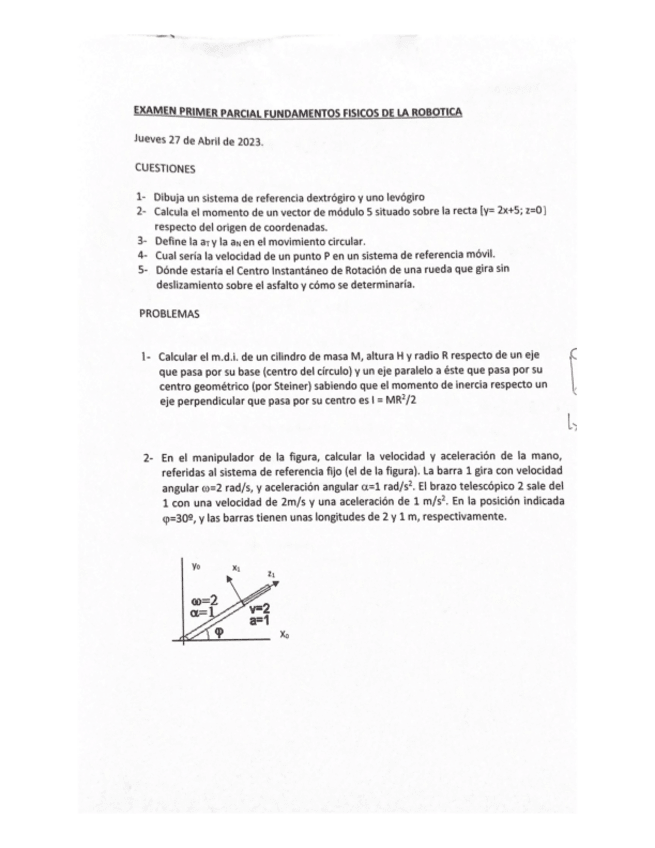 He publicado nuevos examenes de 1º Fundamentos físicos de la robótica: PARCIAL-FISICA.pdf