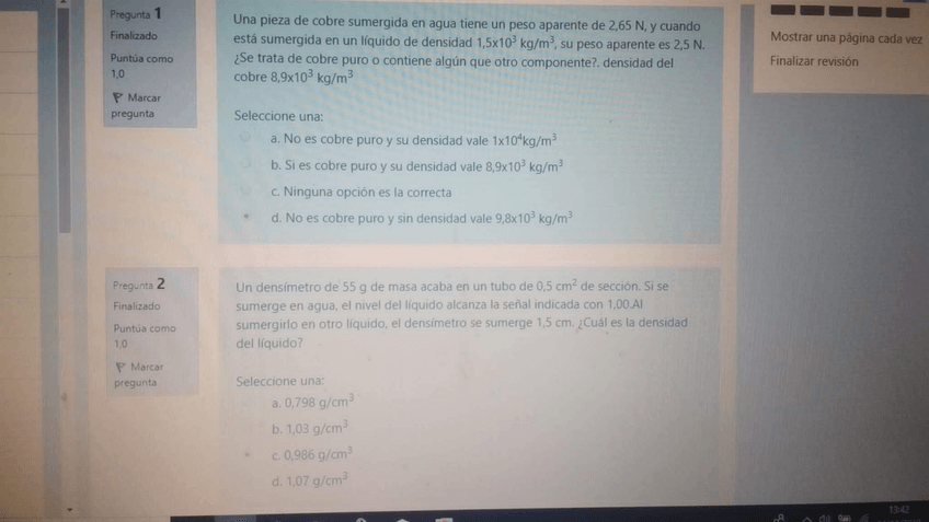 He publicado nuevos test de 1º Fundamentos Físicos en la Ingeniería I: Test Practica Fluidos