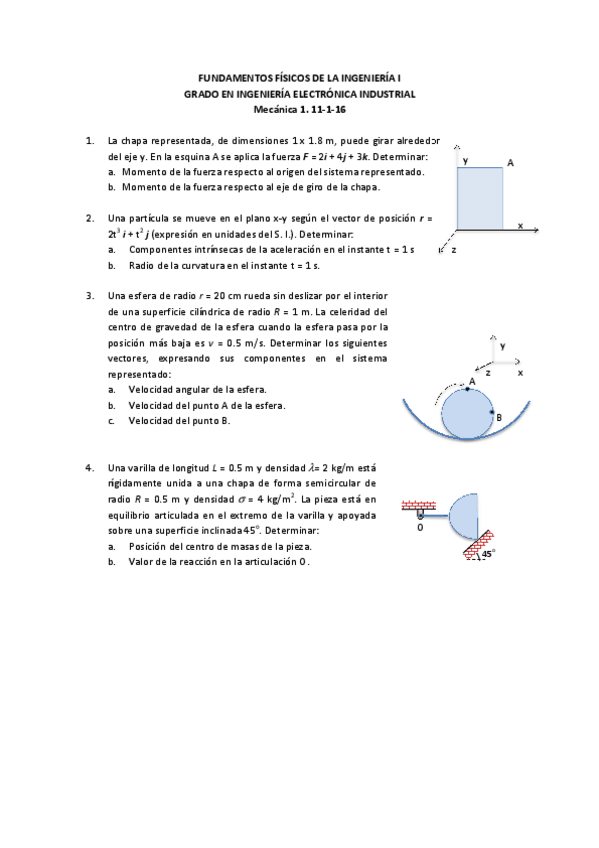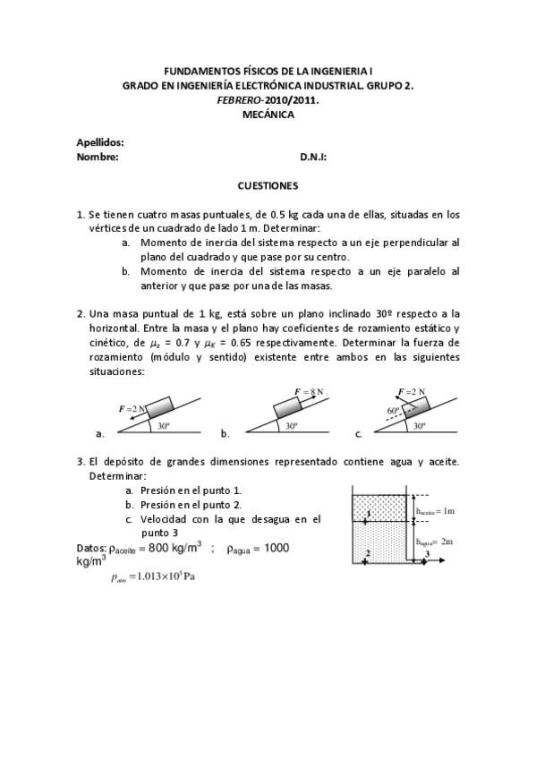 He publicado nuevos examenes de 1º Fundamentos Físicos en la Ingeniería I: Examen-Enero-Ing-Mecanica.pdf