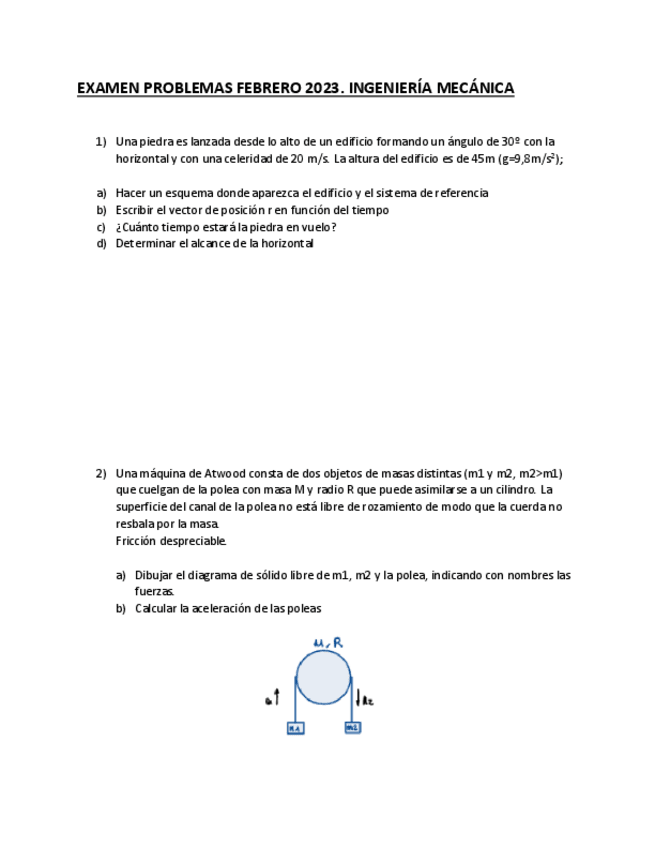 He publicado nuevos examenes de 1º Fundamentos Físicos en la Ingeniería I: EXAMEN-PROBLEMAS-FEBRERO-2023-MECANICA.pdf