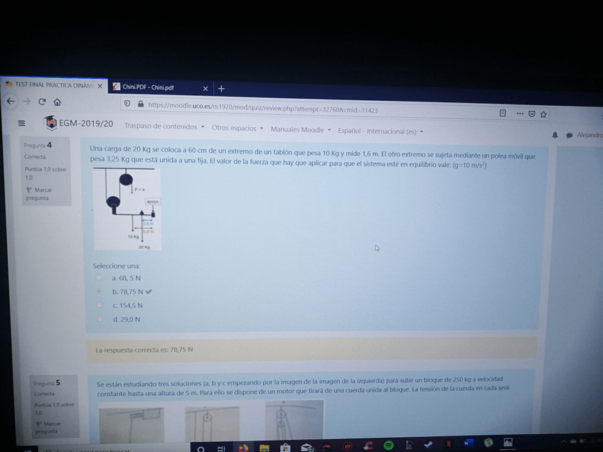 He publicado nuevos test de 1º Fundamentos Físicos en la Ingeniería I: Test Practica Dinámica 3