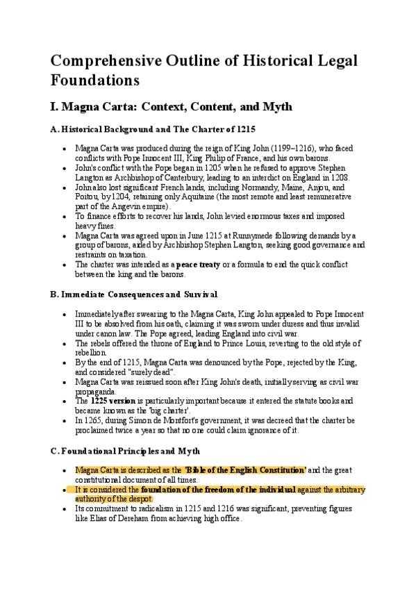 Apuntes "Historical Foundations of the legal system 25/26" DADE Bilingue - Profesor Victor