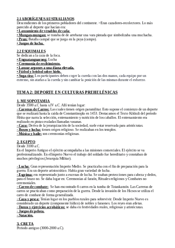 Tema 1: ACTIVIDAD FÍSICA EN LOS PUEBLOS PRIMITIVOS / Tema 2: DEPORTE EN CULTURAS PREHELÉNICAS / Tema 3: ANTIGUA GRECIA / Tema 4: ANTIGUA ROMA
