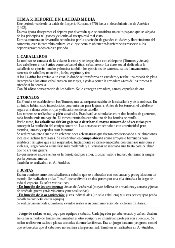 Tema 5: DEPORTE EN LA EDAD MEDIA / Tema 6: EL RENACIMIENTO DEL DEPORTE / Tema 7: DEPORTE CONTEMPORÁNEO Y RESURGIR DE LOS JJ.OO / Tema 8: SUPERACIÓN DE LAS GUERRAS Y NUEVAS TENSIONES