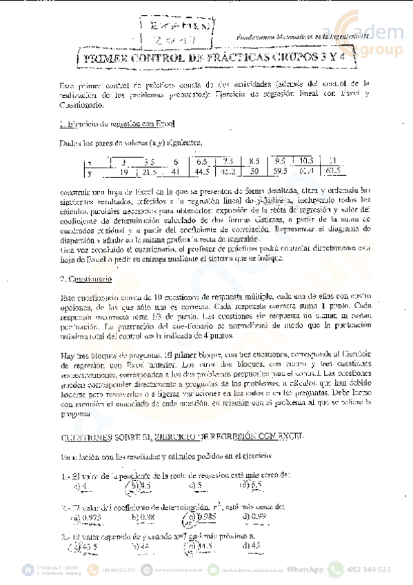 He publicado nuevos practicas de 2º Fundamentos Matemáticos de la Ingeniería III: Excel Bloque 1