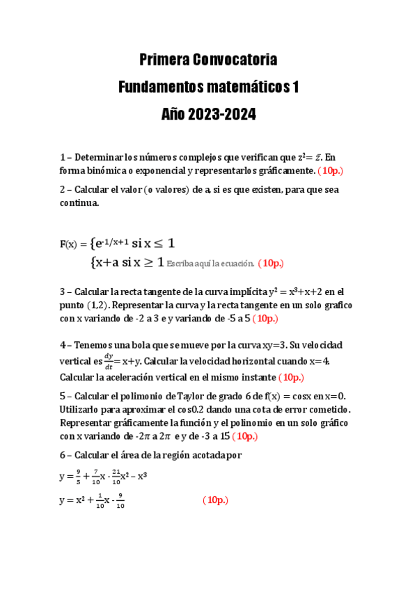He publicado nuevos examenes de 1º Fundamentos Matemáticos I: Primera Convocatoria Mates 1 (23-24).pdf