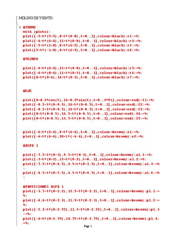 Ejercicio de maple con los comandos necesarios para dibujar un molino de viento